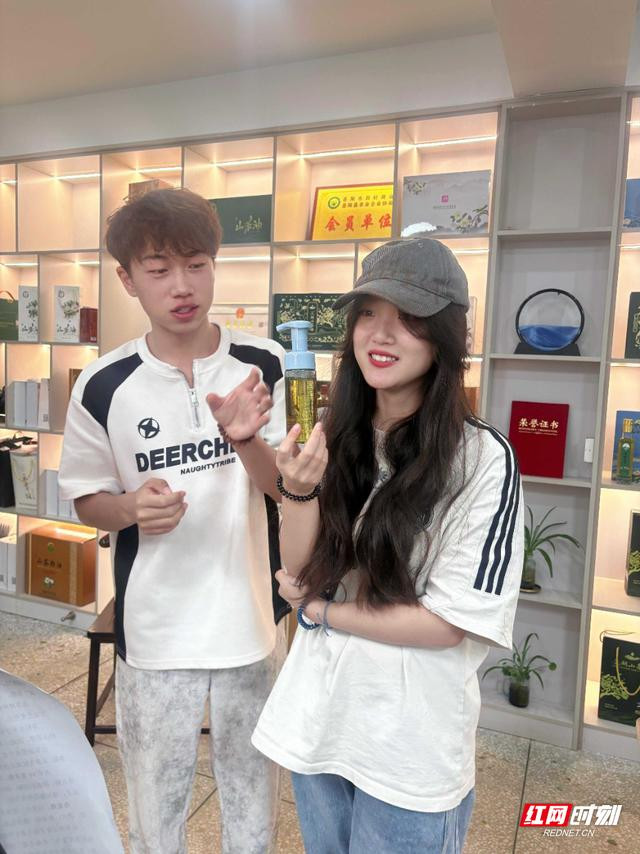 在长湖生态农业有限公司,队员们搭建临时直播间,推介山茶油和茶油护肤品等特色农产品。直播中,他们详细讲解产品的制作工艺与健康价值,共吸引264人次观看,获1080条互动留言,有效拓宽了农产品的销路。